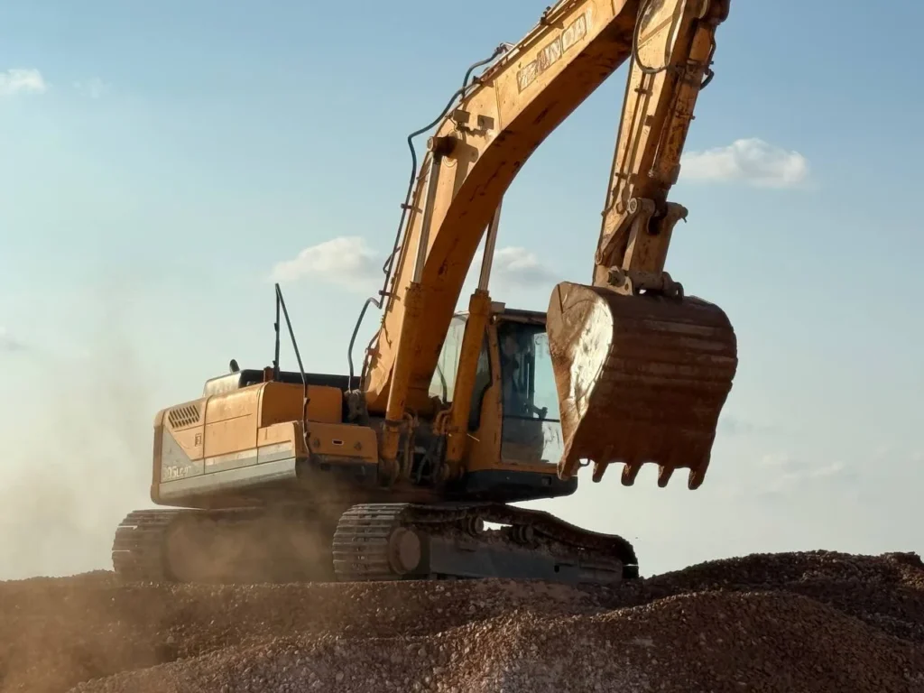 اعمال الحفر لقناة تصريف مياه (Runway )الامطار بجانب المدرج